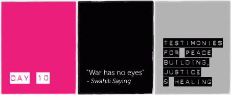 Giving testimony to acts of violence is a courageous choice. As a survivor, bearing witness for the many thousands who have experienced similar violations gives voice to those who cannot speak. It brings alive the experiences of those who have died, and gives some healing to the one who speaks out. For women in situations of armed conflict, the rape and terror are sometimes not an isolated incident but can continue for years through abduction, forced marriage and enslavement to military forces.
