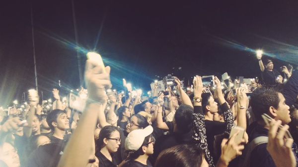 Protesters raise their mobile phones as they continue to protest the #MarcosBurial at People Power Monument