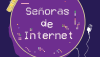 Fondo morado con un bastidor al centro ue tiene una serie de bordados y enmedio un texto que dice Señoras de Internet