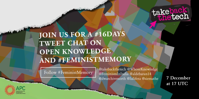 Learn more about openness and feminist knowledge building through our tweet chat with Whose Knowledge?, Feminism in India, Rohini Lakshané, Digital Women's Archive North, Lulú Barrera and Silethemba Mathe.